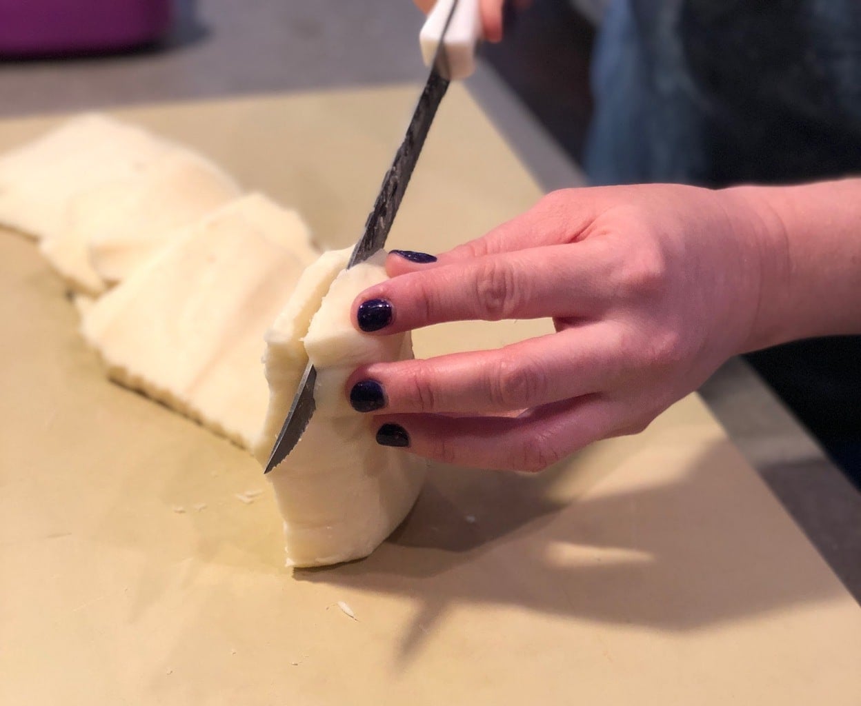 - Spread slices of mozzarella cheese onto a large plate. Sprinkle with salt & pepper.