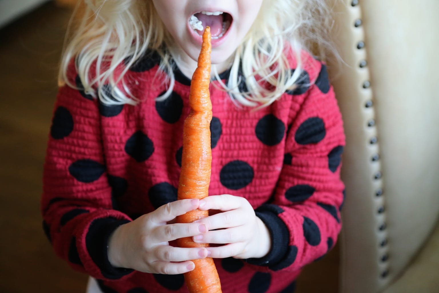 We usually create a pretend version of the main ingredient from our meal (like our Play Food Carrots). This allows the kids to make a connection between what they’re making and what they’re eating. When my kids understand that the ingredients going into a meal aren’t so scary or gross, they are usually more likely to eat the meal. The USDA’s ChooseMyPlate.gov is a great resource for teaching kids about foods and nutrition.